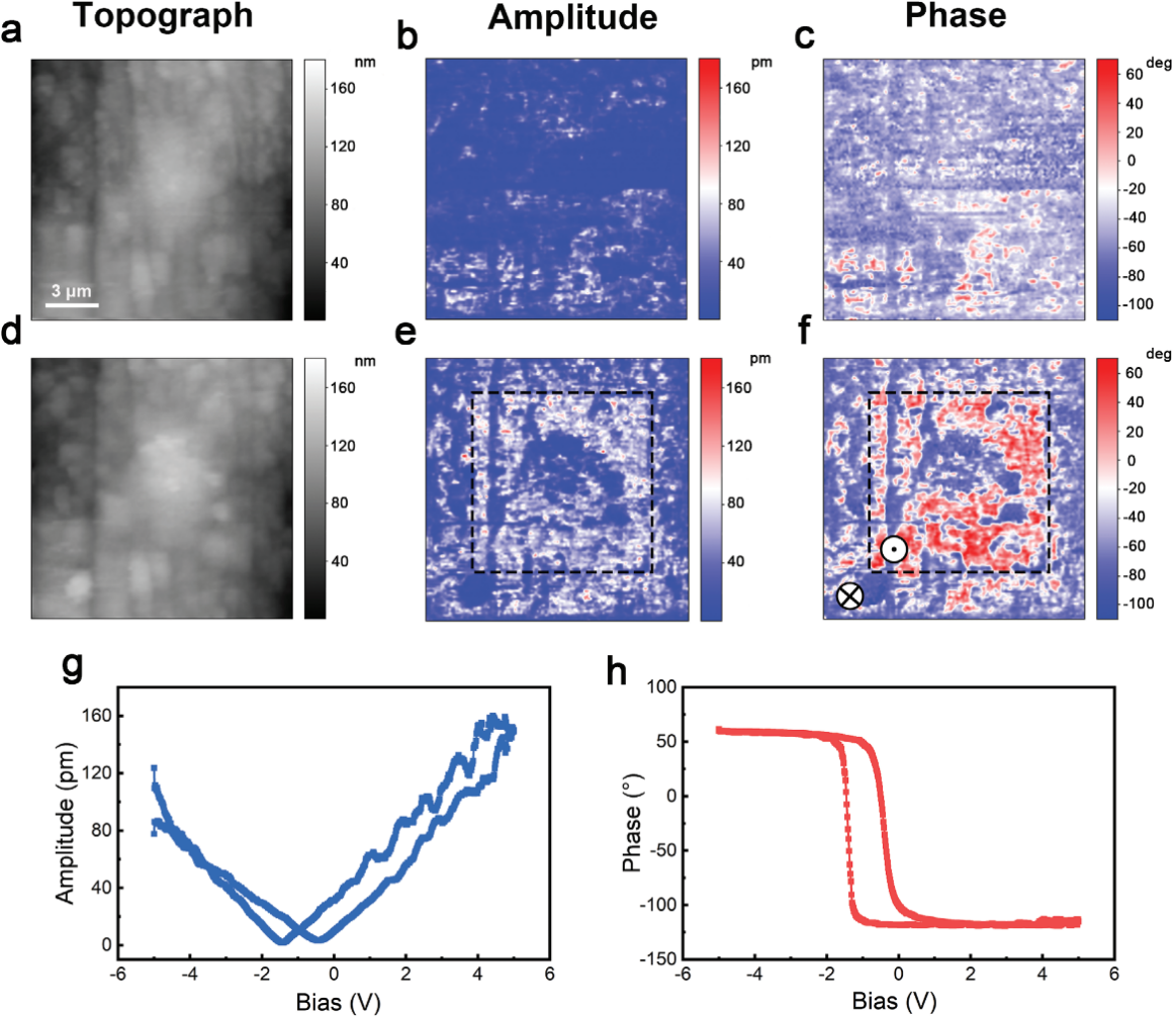 图3. (C7H14N)3V12O30晶体铁电畴区的PFM写入和成像。