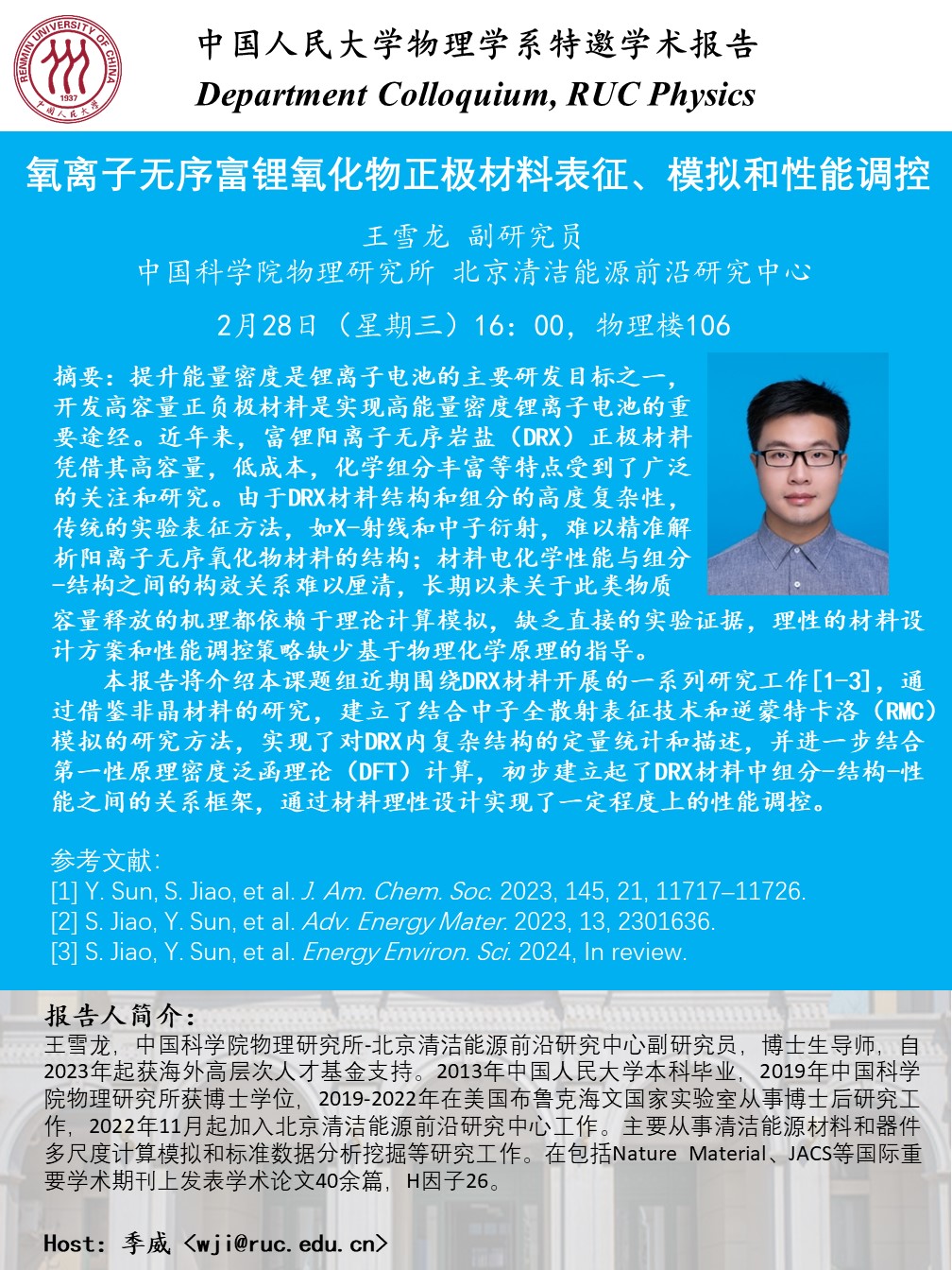 氧离子无序富锂氧化物正极材料表征、模拟和性能调控