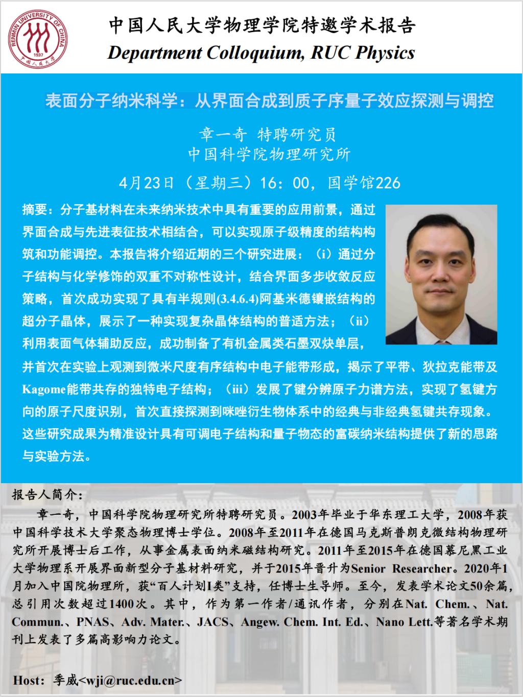 表面分子纳米科学:从界面合成到质子序量子效应探测与调控