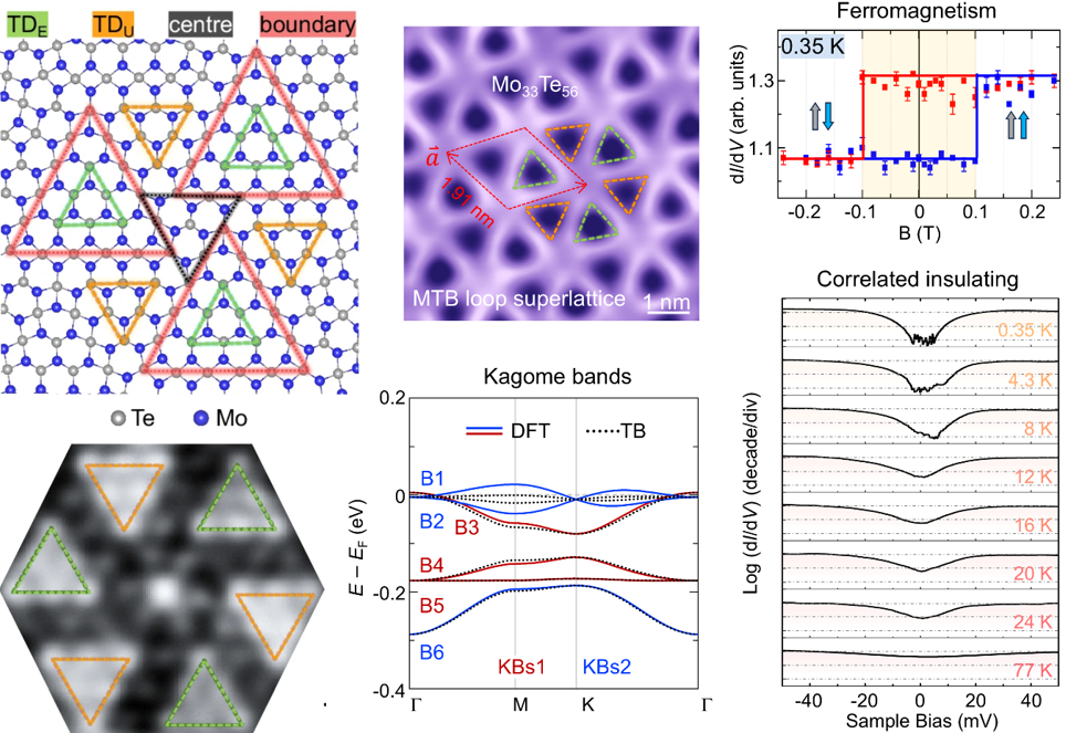 近日,宅宅爱动漫 季威教授研究组与武汉大学张晨栋教授、袁声军教授、吴冯成教授等合作者组成联合团队,通过理论计算结合实验创制和测量,获得了非简单化学配比的单层笼目(kagome)晶格材料Mo33Te56,并发现了其中蕴藏的磁性和关联绝缘体等新物态。相关结果以“Ferromagnetism and correlated insulating states in monolayer Mo33Te56”为题,发表在2025年3月31日出版的《自然·通讯》[Nature Communications 16, 3084 (2025)]上。....