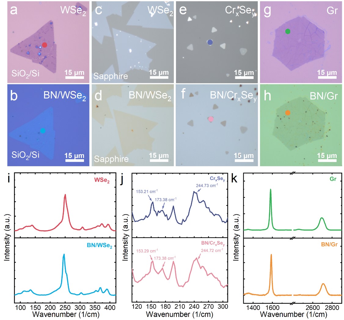 二维材料(2DMs)与器件暴露在外界环境下会伴随老化、表面水氧吸附与污染等问题,使物理性能下降,因此如何对其进行封装保护成为了研究热点。h-BN作为被广泛采用的封装材料,一般是通过转移技术实现,而转移过程中带来的样品破损、化学污染、界面空腔等问题一直阻碍着其走向实际应用。因此,发展一种直接在2D材料或器件上CVD生长h-BN盖层的技术,具有共形生长的特点,可以获得洁净、接触紧密的封装界面,具有重要的实际应用意义...