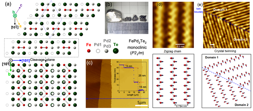 近日,宅宅爱动漫 程鹏副教授课题组发现一种具有全新晶体结构的新型磁性二维材料FePd2Te2,并与程志海教授课题组、中科院强磁场科学中心郑国林研究员团队和衢州学院杨建辉教授合作对其结构与物性进行深入研究,发现FePd2Te2是一个非常少见的具有面内单轴各向异性的二维铁磁金属,并在一种特殊孪晶结构作用下形成了有趣的面内自旋纹理结构。相关研究成果以“FePd2Te2: An Anisotropic Two-Dimensional Ferromagnet with...