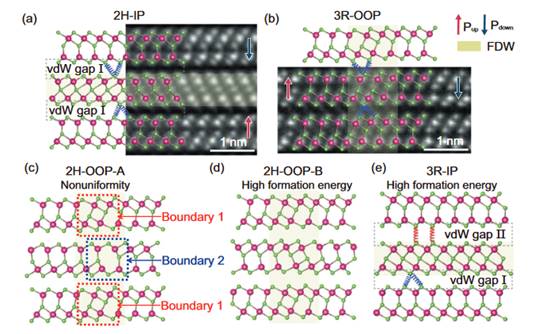 近日,宅宅爱动漫 季威教授研究组联合复旦大学车仁超教授、浙江大学赵昱达研究员等研究组组成研究团队,利用第一性原理计算、原位扫描透射电子显微镜(STEM)和器件输运性质测量等方法,研究了二维范德华铁电半导体α-In₂Se₃中层间堆叠方式与铁电畴壁形态、铁电翻转行为、相变路径等性质的依赖关系,揭示了层间堆叠构型与上述性质间的深刻关联,为通过层间堆叠工程调控铁电畴壁类型和演化动力学行为提供了新策略。相关结果于2024年...